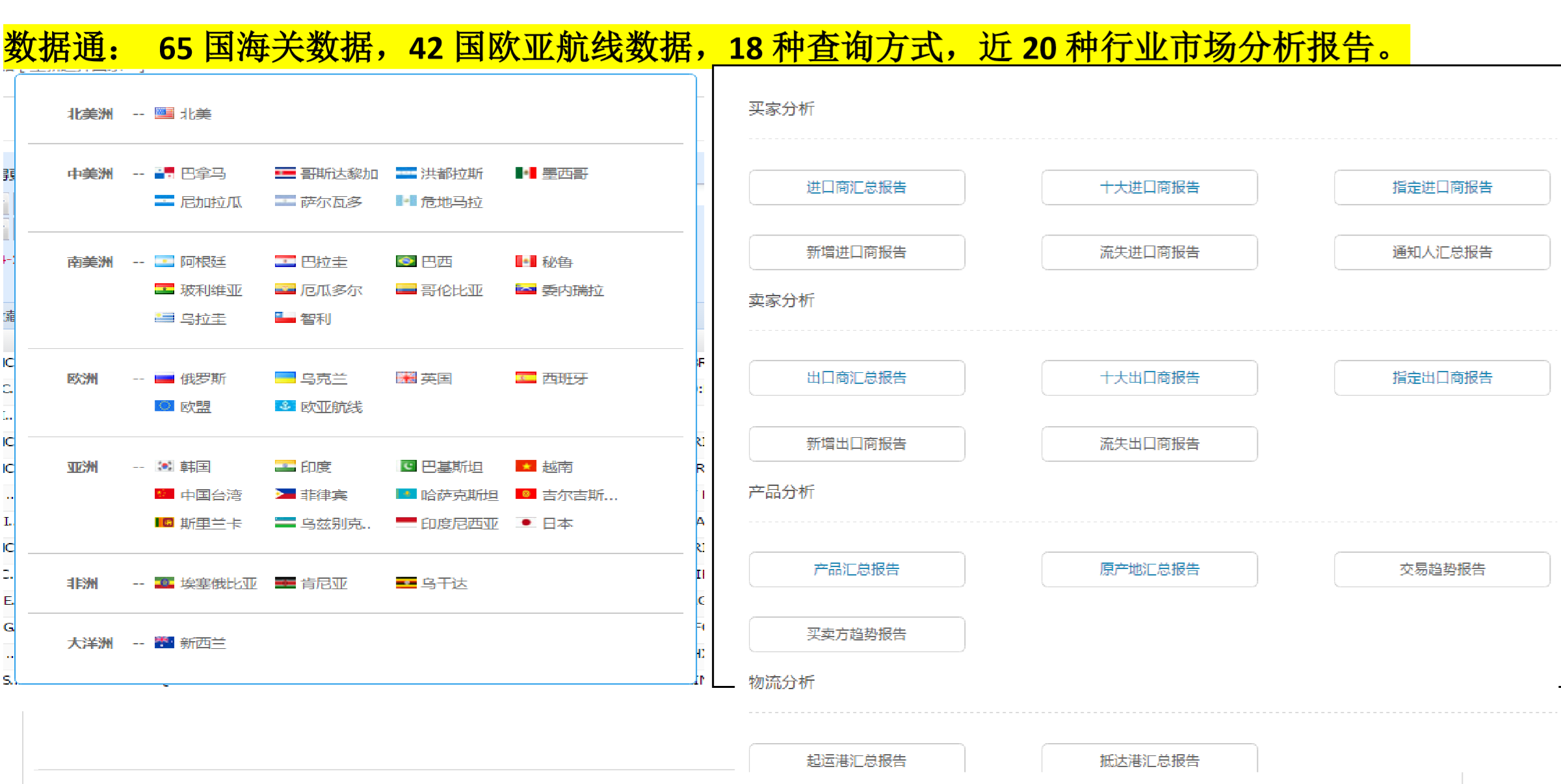 EVO视讯官网海关数据库,实时给予全球涵盖65国海关数据,42国欧亚航线数据,100+亿实时贸易数据,定位1.8亿全球企业信息,帮助您分析全球市场贸易趋势及分布,为您的产品快速、精准、科学地锁定热销国家和新兴市场。